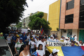La denominada “Marcha por la dignidad de la frontera”, organizada por la sociedad civil, comenzó en la parte alta de la población y recorrió las calles de la zona comercial, hasta llegar a un sector de la avenida Venezuela y luego retornar hacia la plaza Bolívar de San Antonio.